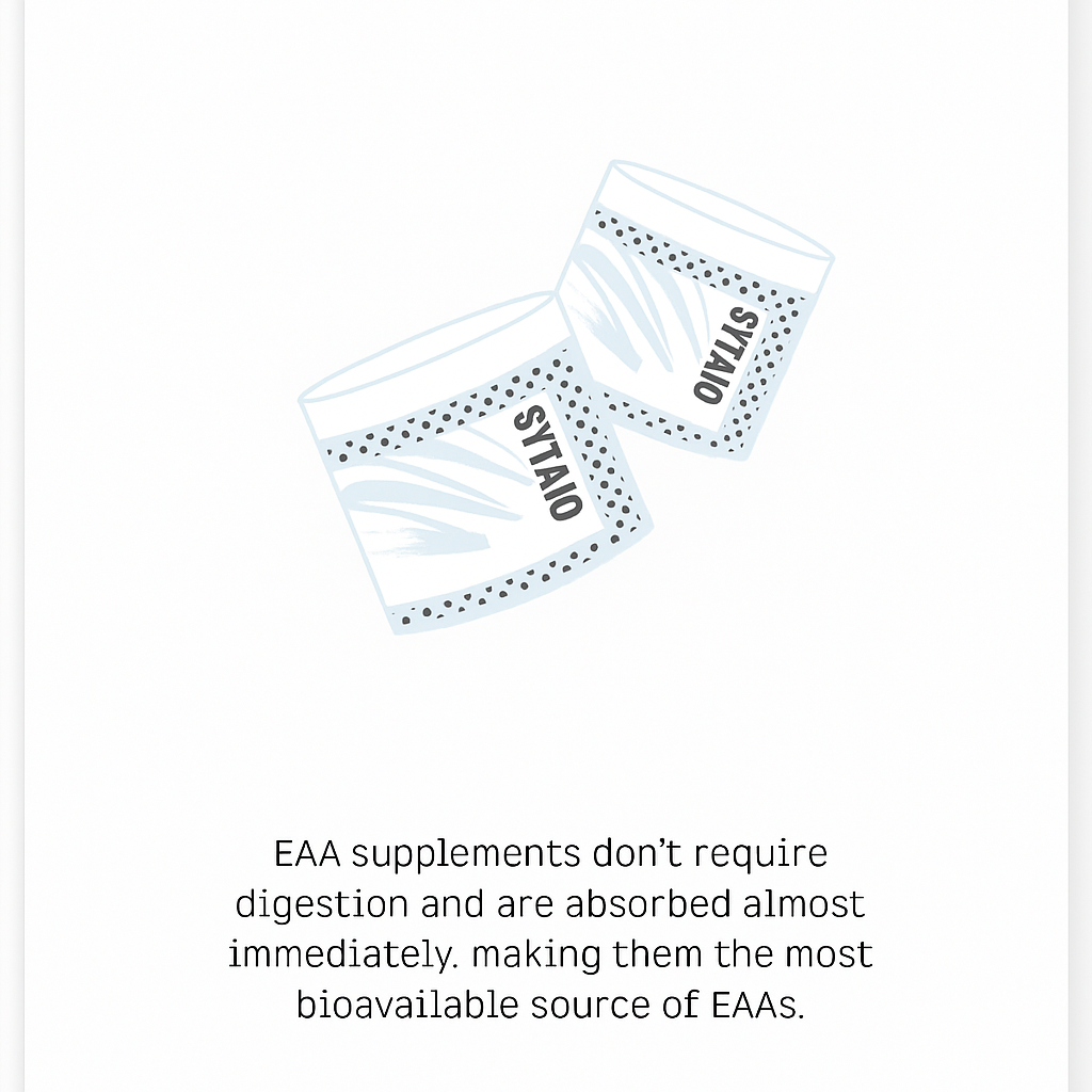 The Sytaio Aminos formula is based on over 20 years of essential amino acid research and contains the ideal ratios of all 9 EAAs.